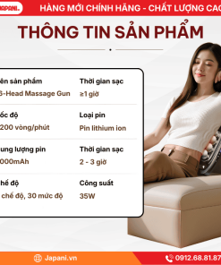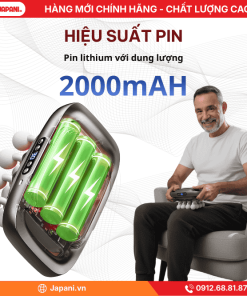 Máy massage đa năng cầm tay JAPANI được trang bị pin sạc dung lượng lên tới 2000mAH, đáp ứng nhu cầu sử dụng liên tục trong nhiều phiên massage mà không cần sạc lại thường xuyên.