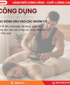 Với 16 đầu massage đa dạng, giúp tác động sâu vào các vùng vai, lưng, chân và cổ hiệu quả. Sản phẩm có thiết kế cầm tay tiện dụng, dễ dàng sử dụng tại nhà, văn phòng hay sau khi tập luyện