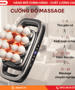 JAPANI MDN-4347 được trang bị nhiều mức rung khác nhau, cho phép người dùng linh hoạt điều chỉnh từ nhẹ đến mạnh theo nhu cầu thư giãn hoặc phục hồi cơ.