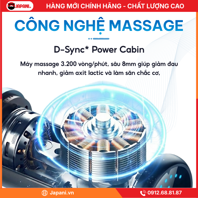 Với dải tốc độ từ 1400 đến 3200 vòng/phút, JAPANI MCT-1913 tạo ra các xung lực bộ gõ mạnh mẽ, có khả năng thâm nhập sâu vào các lớp cơ bắp.