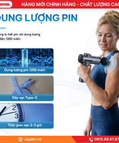 Máy massage cầm tay JAPANI MCT-1913 được trang bị pin Lithium-ion dung lượng 1200mAh, mang lại hiệu suất hoạt động ấn tượng.