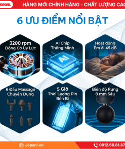 Súng mát xa JAPANI MCT-1913 6 đầu massage, 6 cấp độ gõ