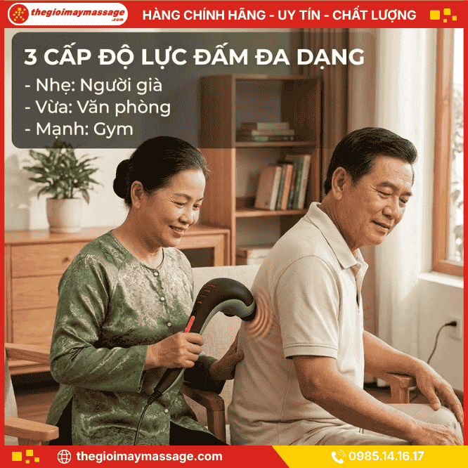 Máy massage cầm tay JAPANI MDL-5319 đột phá với hệ thống 3 cặp đầu đấm kép, nhân đôi diện tích trị liệu. Công suất 35W mạnh mẽ dùng điện trực tiếp giúp duy trì lực đấm ổn định, đánh tan bó cơ lưng và vai gáy tức thì.
