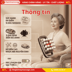 Máy đấm lưng JAPANI MDL-5464 với biên độ 25mm và 16 đầu massage giúp giảm đau cơ sâu, lưu thông khí huyết. Hàng chính hãng, bảo hành 18 tháng