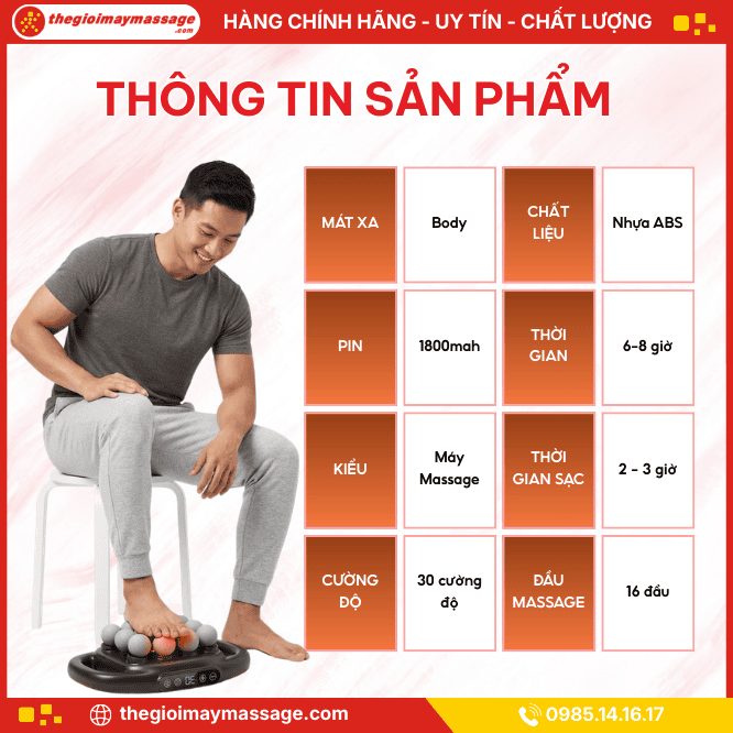 Máy massage cầm tay đa năng JAPANI MDN-4248 16 đầu, 30 cấp độ
