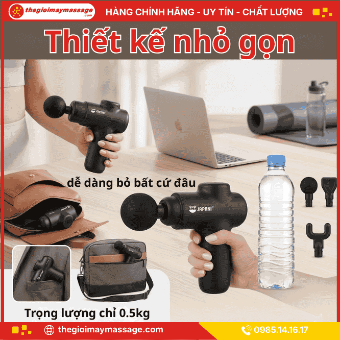 Thiết kế nhỏ gọn, nhẹ & tiện lợi của Súng Massage Cầm Tay JAPANI MCT-2986