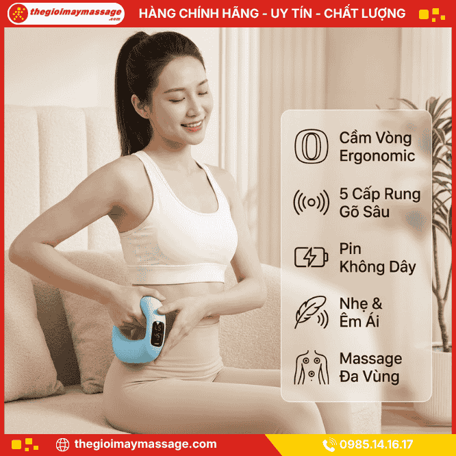 - Công nghệ massage: Rung kết hợp gõ sâu