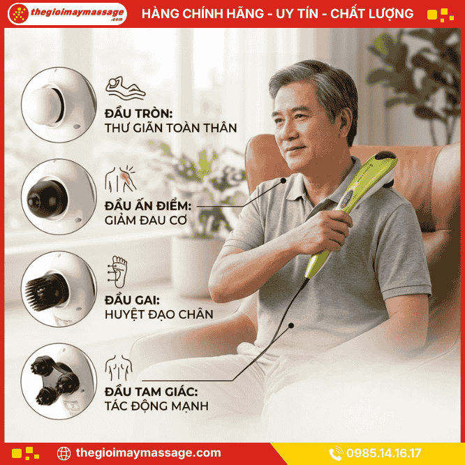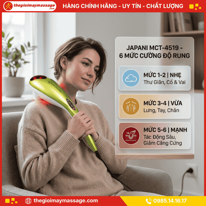 Máy massage cầm tay JAPANI MCT-4519 4 đầu, 6 cường độ