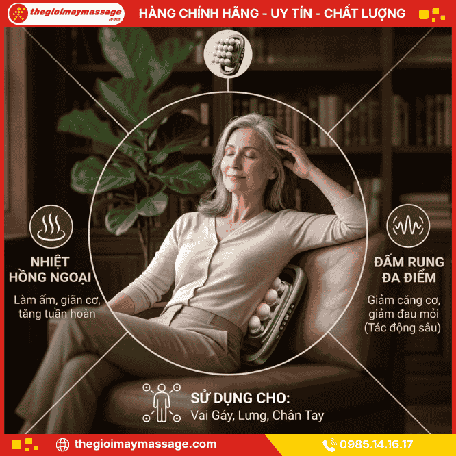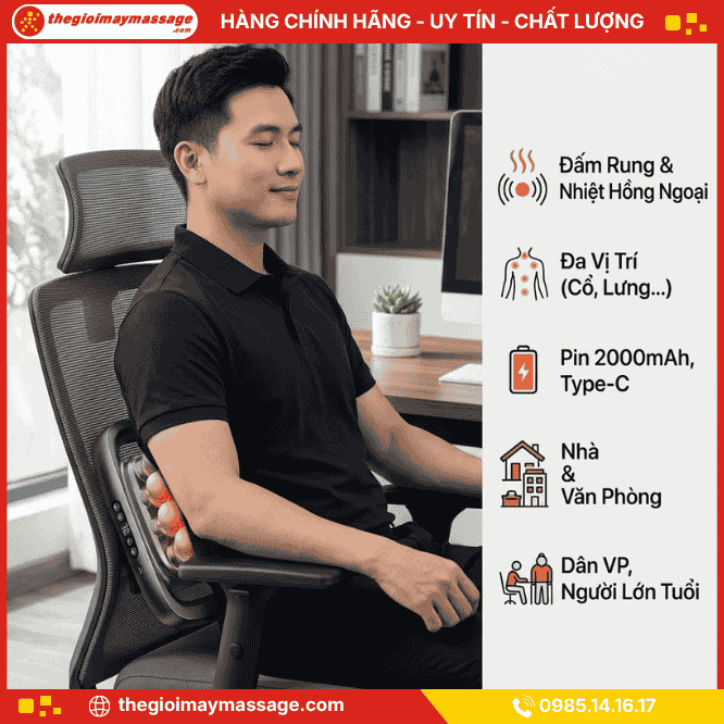Máy massage cầm tay JAPANI MDL-5403 sử dụng công nghệ đấm rung kết hợp nhiệt hồng ngoại, hỗ trợ giảm đau nhức và thư giãn cơ thể, dùng cho cổ, vai gáy, lưng, eo, tay, chân, pin 2000mAh sạc Type-C, thiết kế cầm tay nhỏ gọn từ nhựa ABS bền bỉ.