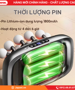 Máy massage cầm tay JAPANI ứng dụng động cơ không chổi than, 16 đầu massage, 1200–3200 vòng/phút, pin 1800mAh giúp giãn cơ sâu, giảm đau nhức, thư giãn hiệu quả mọi lúc mọi nơi. [hehe]