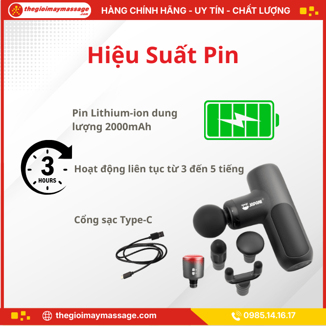 Hiệu Suất Pin Vượt Trội của Máy Massage Rung Cầm Tay JAPANI MCT-2382