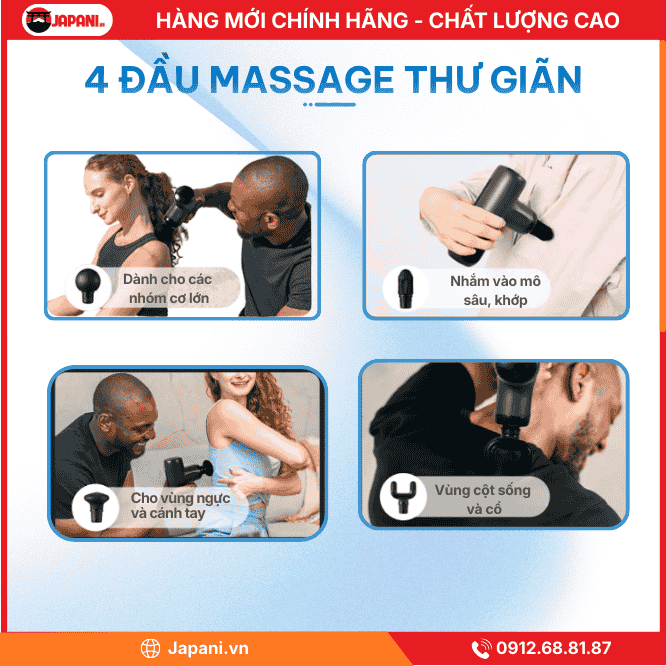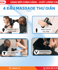 Máy xoa bóp cầm tay JAPANI MCT-2382 được trang bị 4 đầu massage chuyên biệt, mỗi đầu có chức năng riêng biệt: