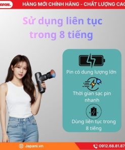 - Thời gian sử dụng dài: Với mỗi lần sạc đầy, thiết bị có thể hoạt động liên tục trong khoảng 4 đến 8 giờ tùy thuộc vào cường độ sử dụng. Điều này đảm bảo bạn có thể tận hưởng liệu trình massage dài mà không lo hết pin giữa chừng, rất tiện lợi cho những chuyến đi xa hoặc sử dụng liên tục.