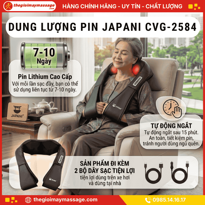 Dung lượng pin của máy mát xa vai lưng cổ JAPANI CVG-2584