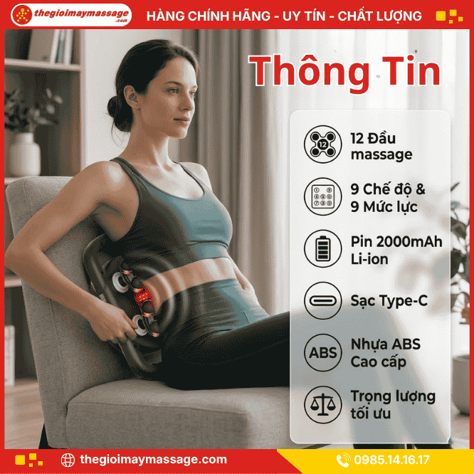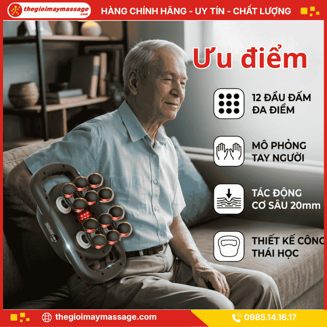Máy massage đấm lưng cao cấp JAPANI MDL-6026 12 đầu đấm