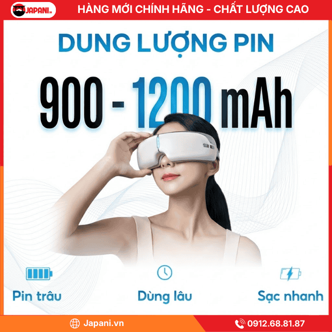 Máy massage mắt JAPANI MSM-3484 được trang bị dung lượng pin từ 900-1200 mAh cho phép người sử dụng máy mát xa có thể thư giãn liên tục từ 3-4 giờ.