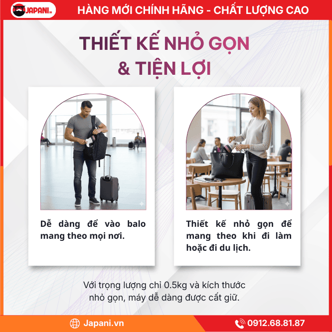 - Thiết kế tiện lợi: Kích thước mini (16x15x10cm) và trọng lượng nhẹ chỉ 0.5kg, giúp dễ dàng cầm nắm và thao tác bằng một tay.