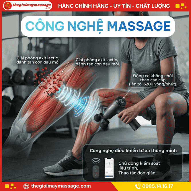 Công nghệ này tạo ra các xung lực bộ gõ với tần số cao (lên tới 3200 vòng/phút), giúp giải phóng axit lactic tích tụ, đánh tan các cơn đau mỏi.